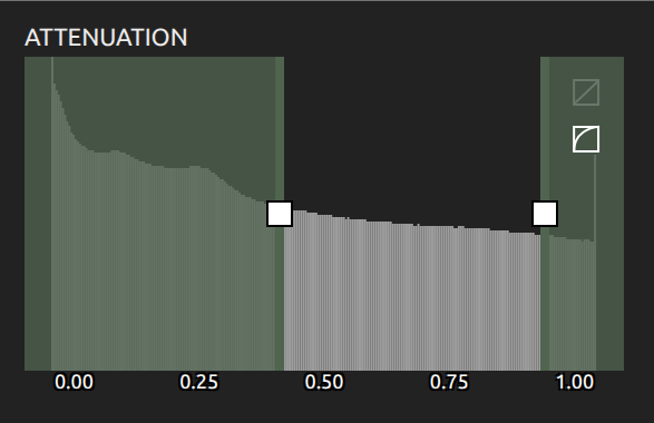 Voyager's attenuation histogram and color mapping visualization controls.