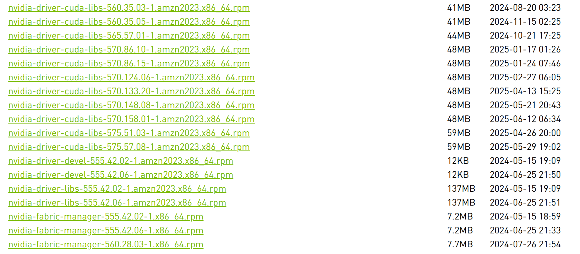 A close look at the driver repo confirms that there is exactly one driver version below the cutoff—version 555—and it is indeed the only driver which contains the nvidia-driver-libs, which includes all the desktop dependencies, including the missing libGLX.so.0 file: